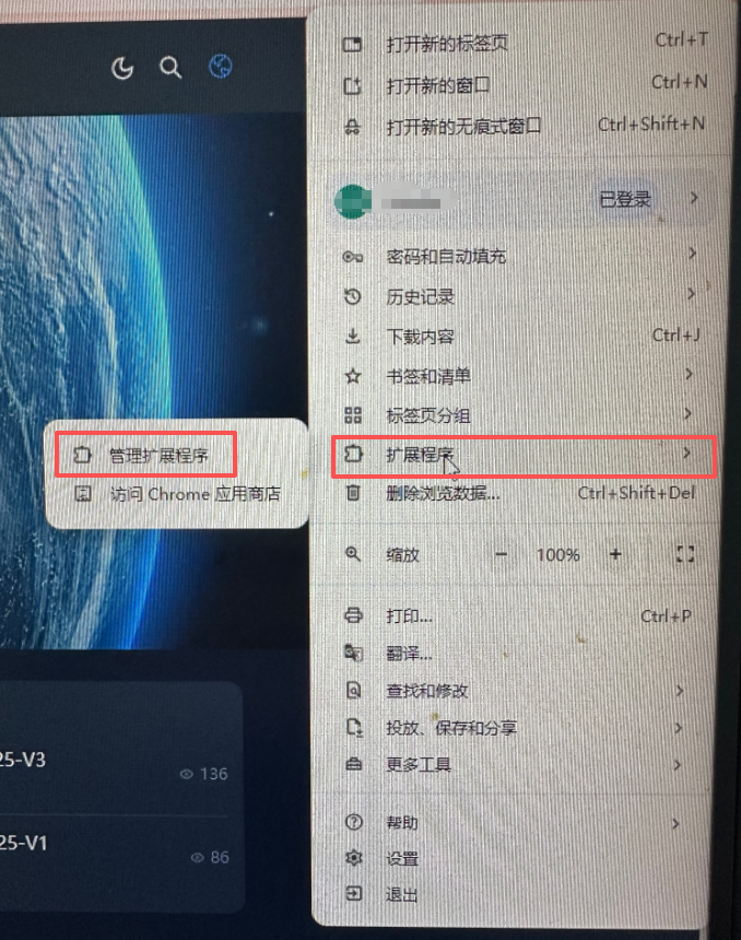 安装方法:在谷歌浏览器右侧--扩展程序--管理扩展程序